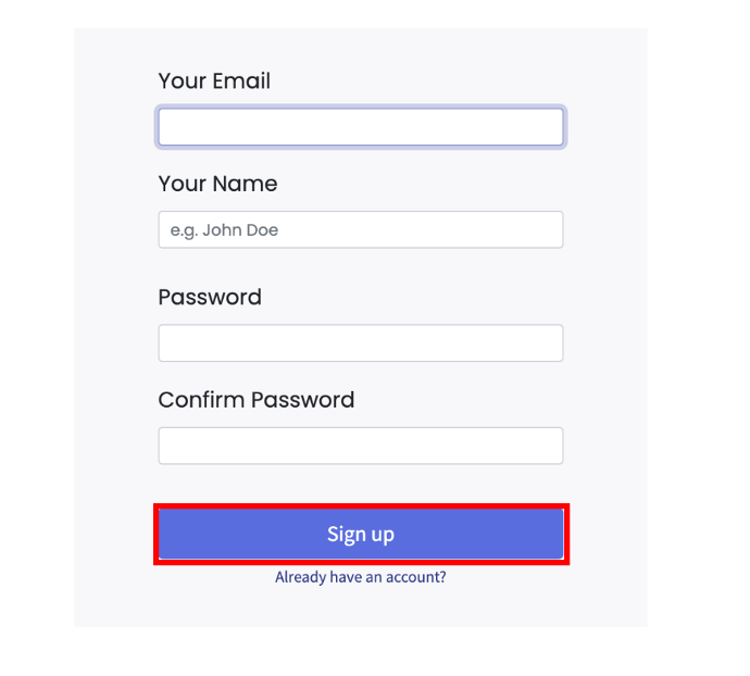 Fill out the form with an email address for your account, your name and create a password you will remember!