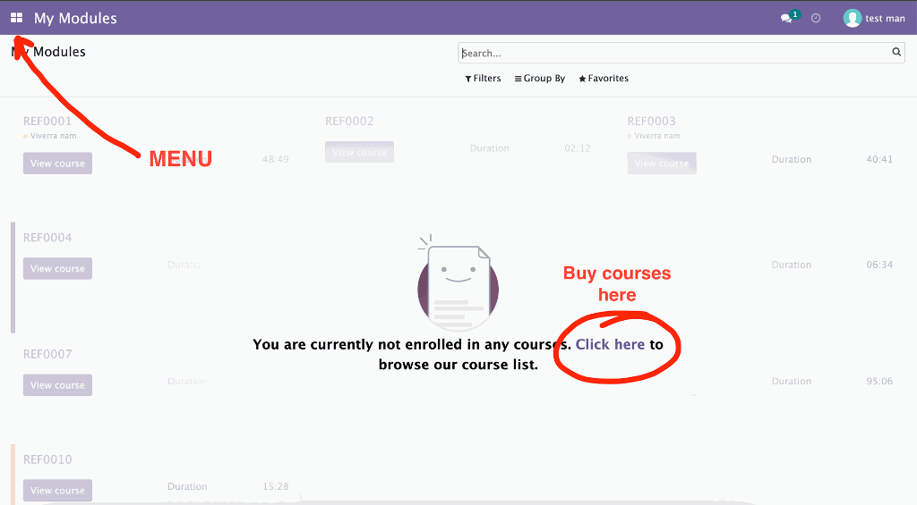 If you haven't already bought a module, you can follow the instructions that will be on the screen to browse the courses.