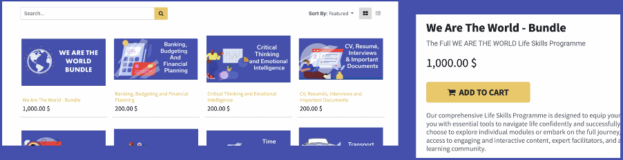 After logging into the WE ARE THE WORLD website, you will be immediately directed to a "My Modules" Section. If you have already purchased modules, you can click on "View course" to start your course