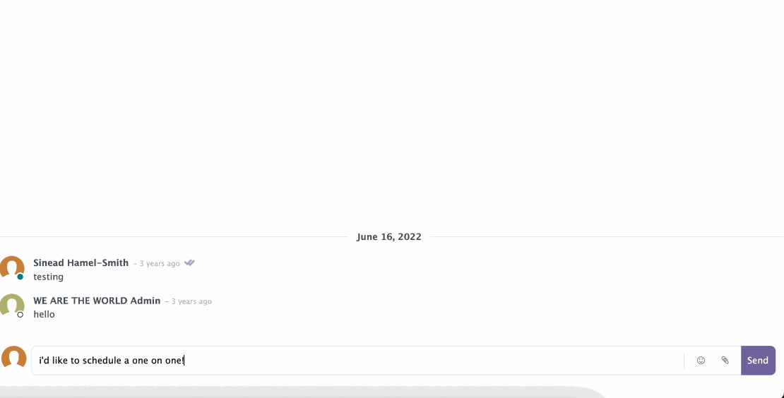 Type the name of the person responsible for the course( We are the world Admin )and select their name from the list if you don't already have a chat with the admin in that list.